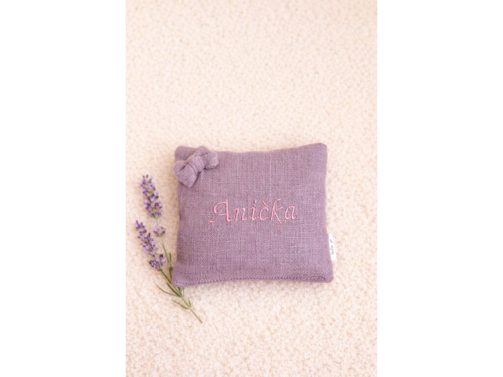 Polštářek lze jemně promnout, čímž se uvolní přirozená vůně levandule. Je vhodný jako součást večerního rituálu pro navození klidného prostředí.